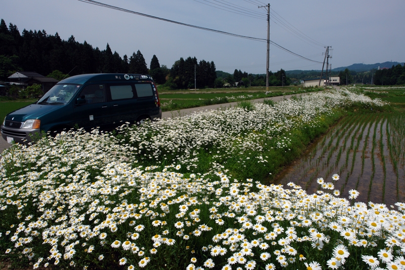マーガレットの咲く田園で(新潟県三条市)
