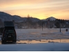 道の駅「関川」にて。朝焼けです。セオリー通り午後から暴風雪となりました。ここの農産物直売所「あいさい」もお気に入りです。