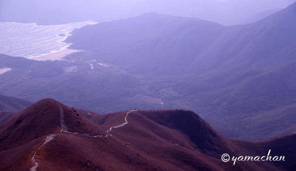 香港で最も好きな山の1つであるシャープ・ピーク手前の稜線。眼下は大浪村。