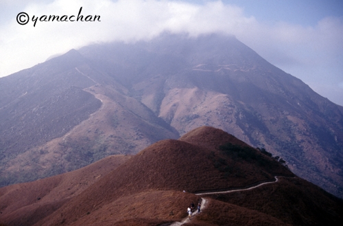 ランタオ島、ランタオ・トレイルをランタオ・ピークをめざしています。向こうはサンセット・ピーク。冬の香港は山がこのように茶色くなっています。天候も安定し冬の香港は絶好の登山シーズンです。