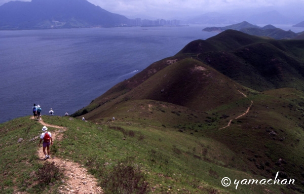香港の山歩きの中でも有数のロングコース(エスケープルートはない)プレーバーコーブを一周するトレイルにて。海と湖を両方に眺めながら歩く絶景コースです。