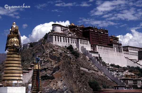 富士山とほぼ同じ標高3700m。ラサのホテルには酸素ボンベが常備されていた。1997年9月に訪問。