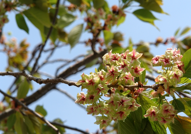 江戸川区葛西「雷公園」の御衣黄。花のピークをすぎた頃にこの赤色が出てくるそうです。