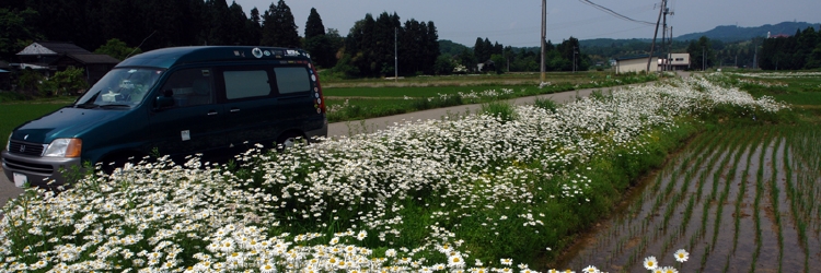 マーガレットの咲く田園で(新潟県三条市)