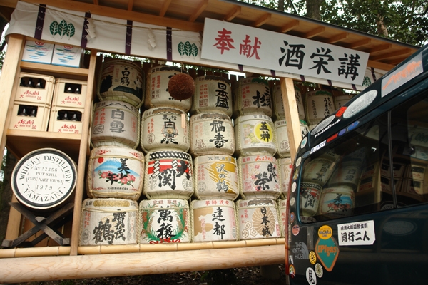 奈良県桜井市大神神社にて。日本酒だけでなくビールやウィスキーも。