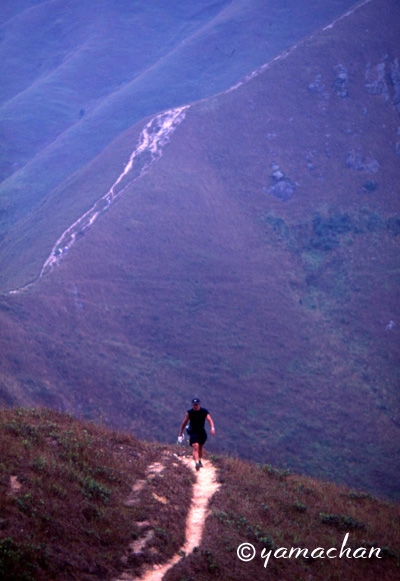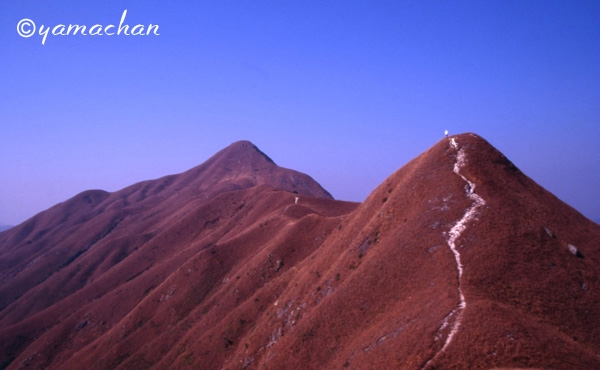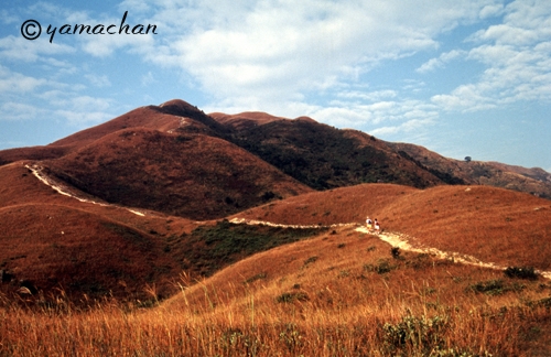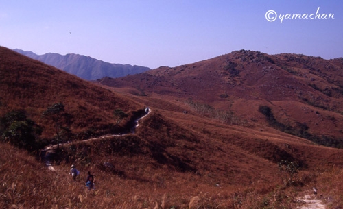 ランタオ島、ランタオ・トレイルをランタオ・ピークをめざしています。向こうはサンセット・ピーク。冬の香港は山がこのように茶色くなっています。天候も安定し冬の香港は絶好の登山シーズンです。