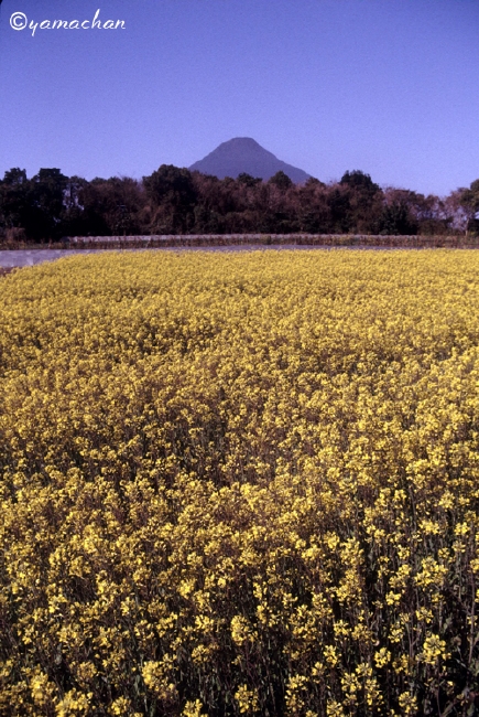 いよいよ開聞岳に向かいます。菜の花畑がよく似合います。