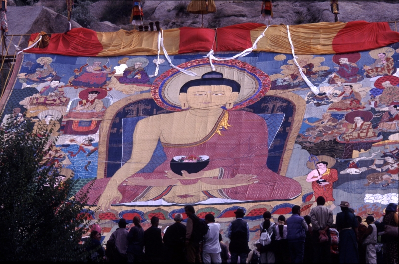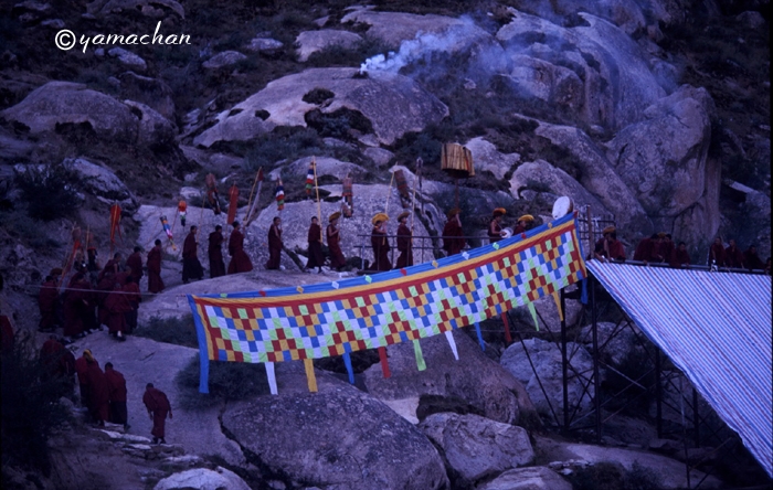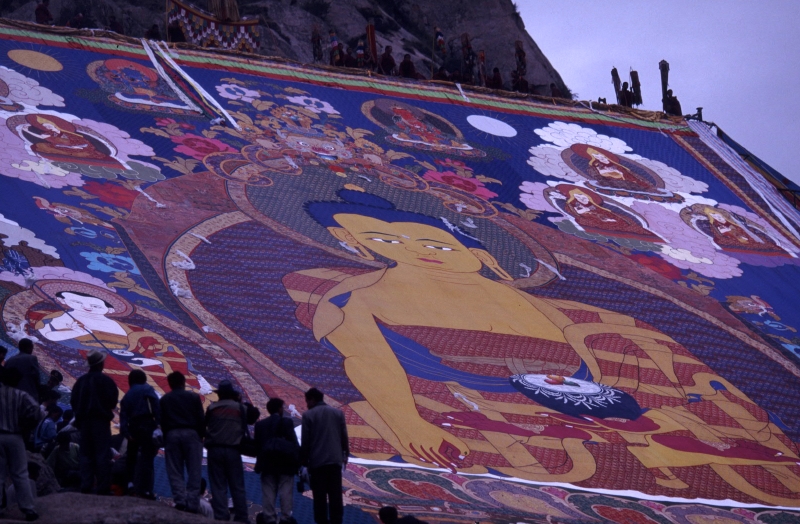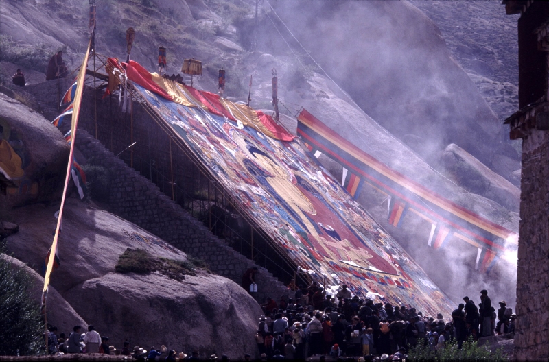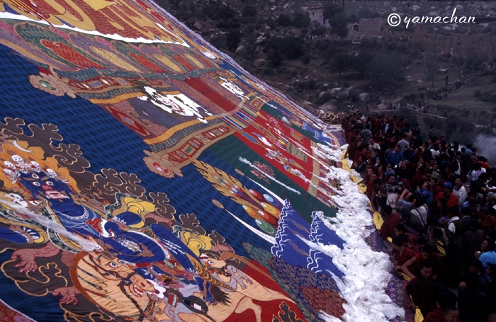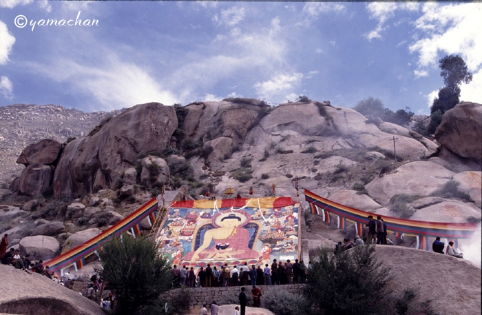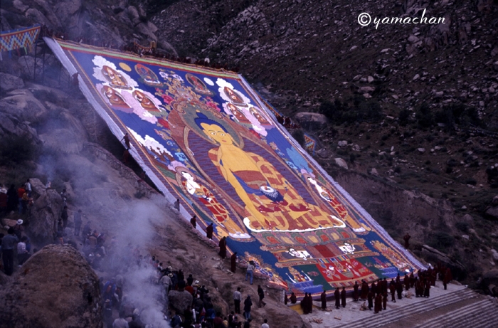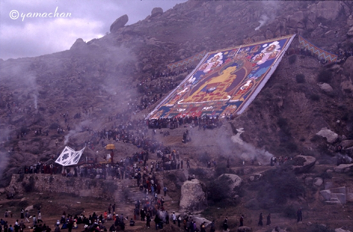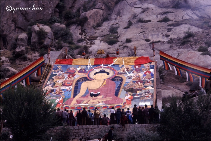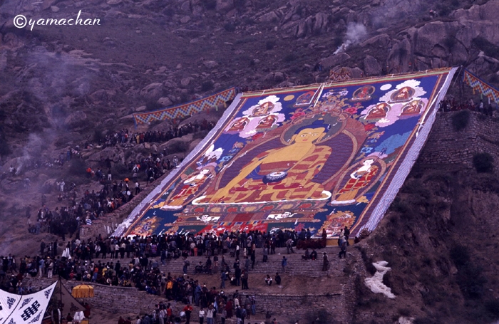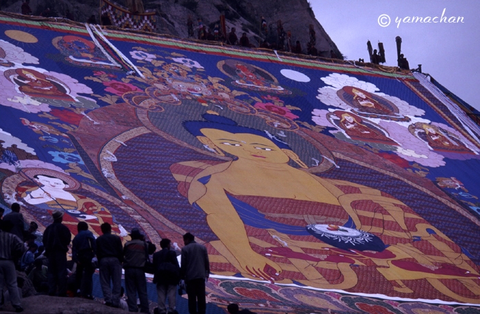 「ショートン祭(雪頓節、ヨーグルト祭)」が開かれているラサ近郊のデプン寺、セラ寺を訪れ、大タンカの御開帳を拝観。